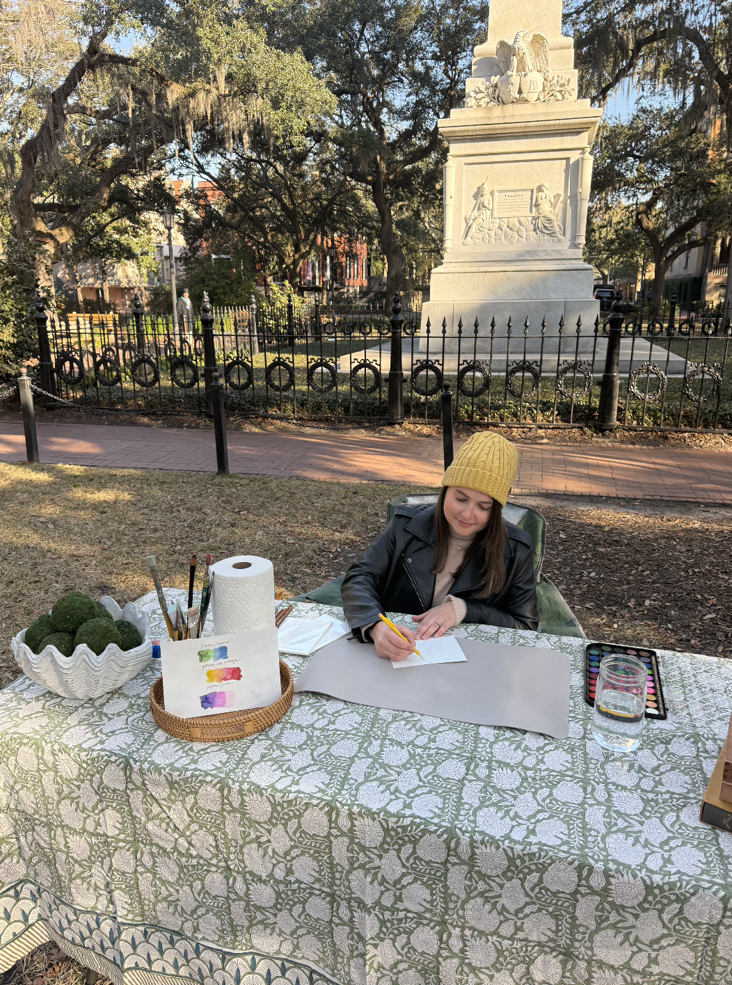 I now offer live watercolor painting for brand events, parties, and private experiences. I paint whimsy florals and scenes on cards, notebooks, and more that leave your guest with a unique gift. Guests can watch and chat with me!